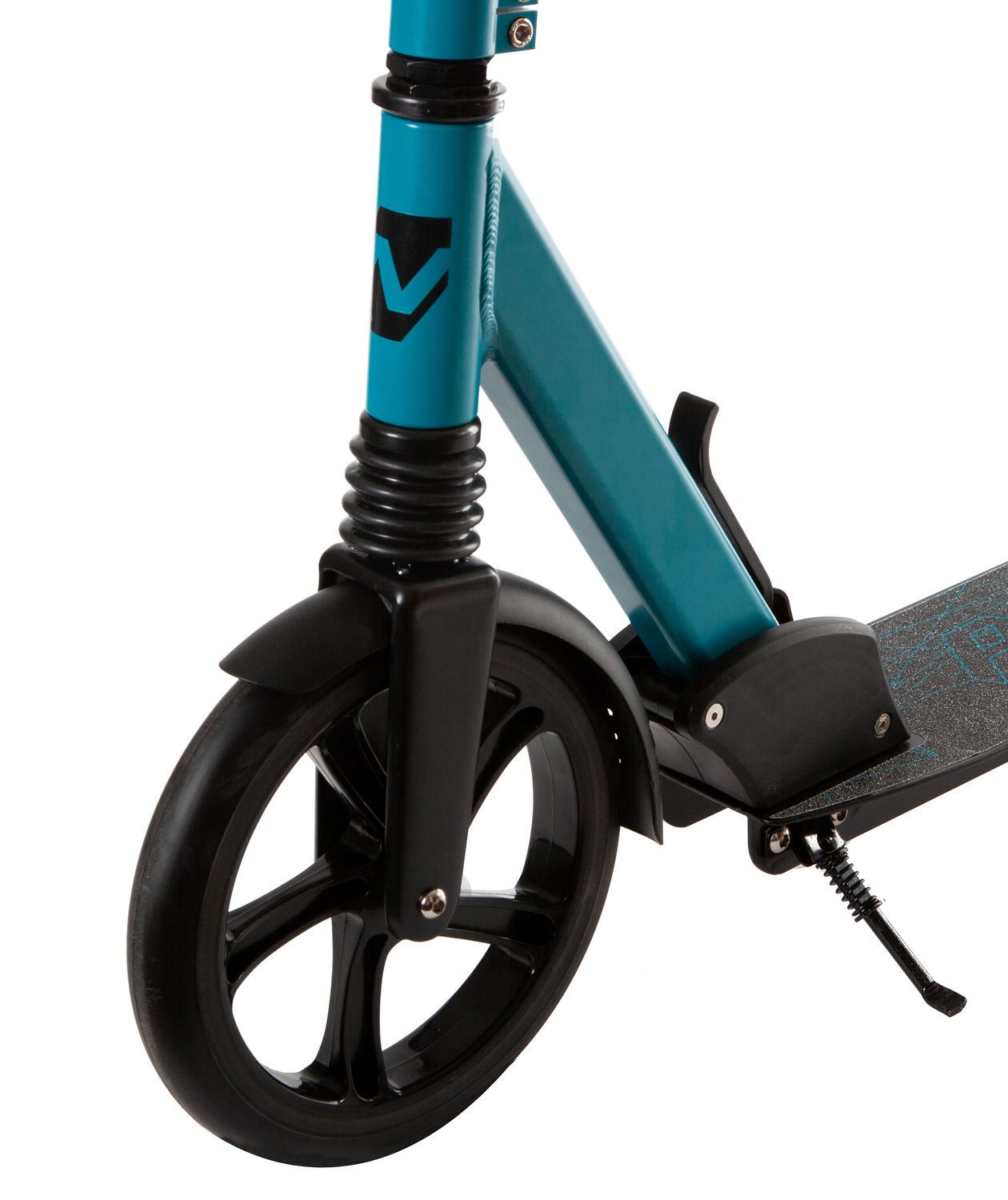 Диаметр переднего колеса составляет 230 мм, заднего — 200 мм. Они выполнены из полиуретана, устойчивого к низким температурам и механическим повреждениям. Торможение осуществляется за счет нажатия ногой на заднее крыло. Предусмотрена регулировка руля по высоте. Класс подшипников — ABEC-7.