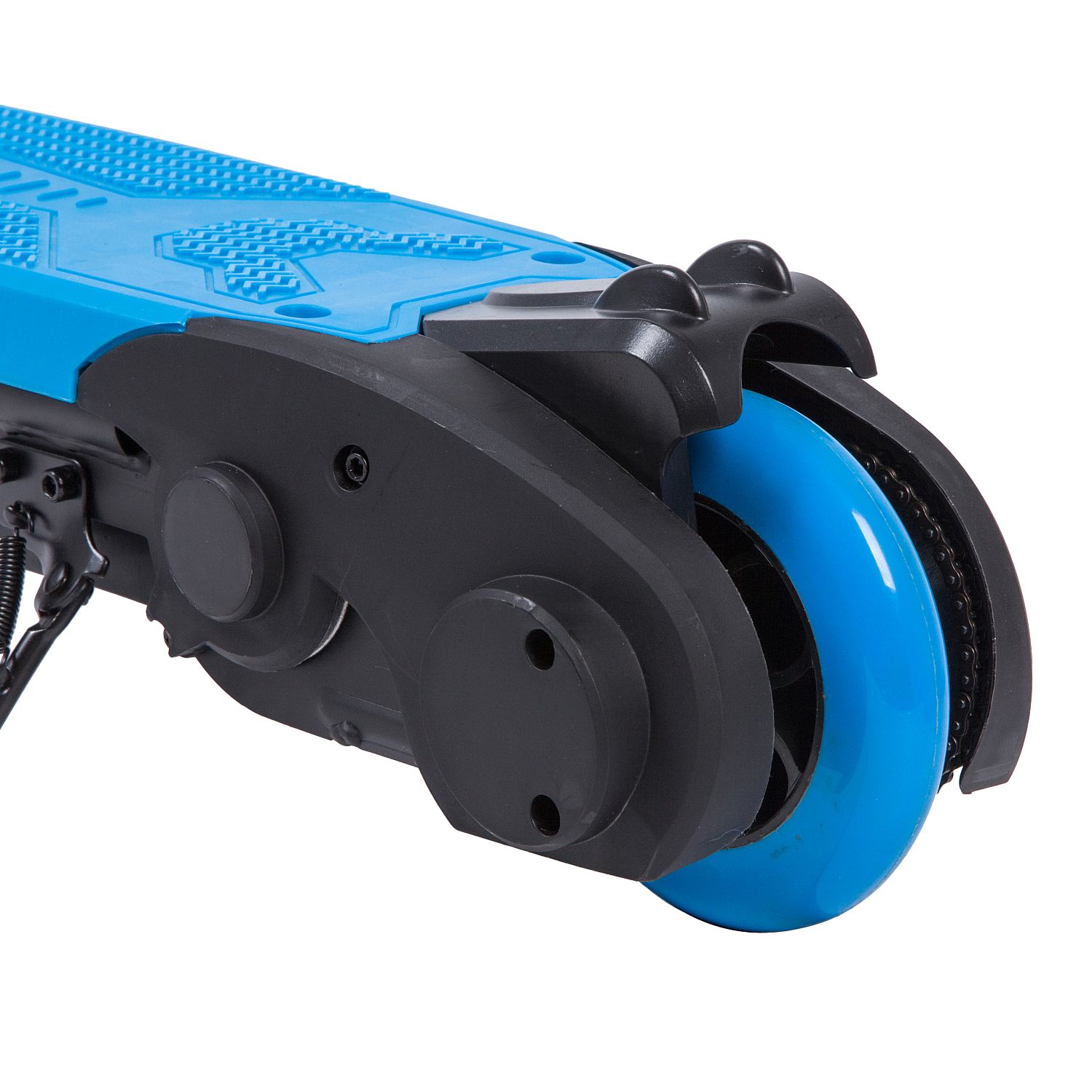 Модель имеет широкую платформу и увеличенный размер переднего колеса, чтобы сделать поездки более комфортными, а самокат более проходимым. Двигатель имеет цепной привод, что делает его надежным и тяговитым. Максимальная скорость самоката составляет 14 км/ч.