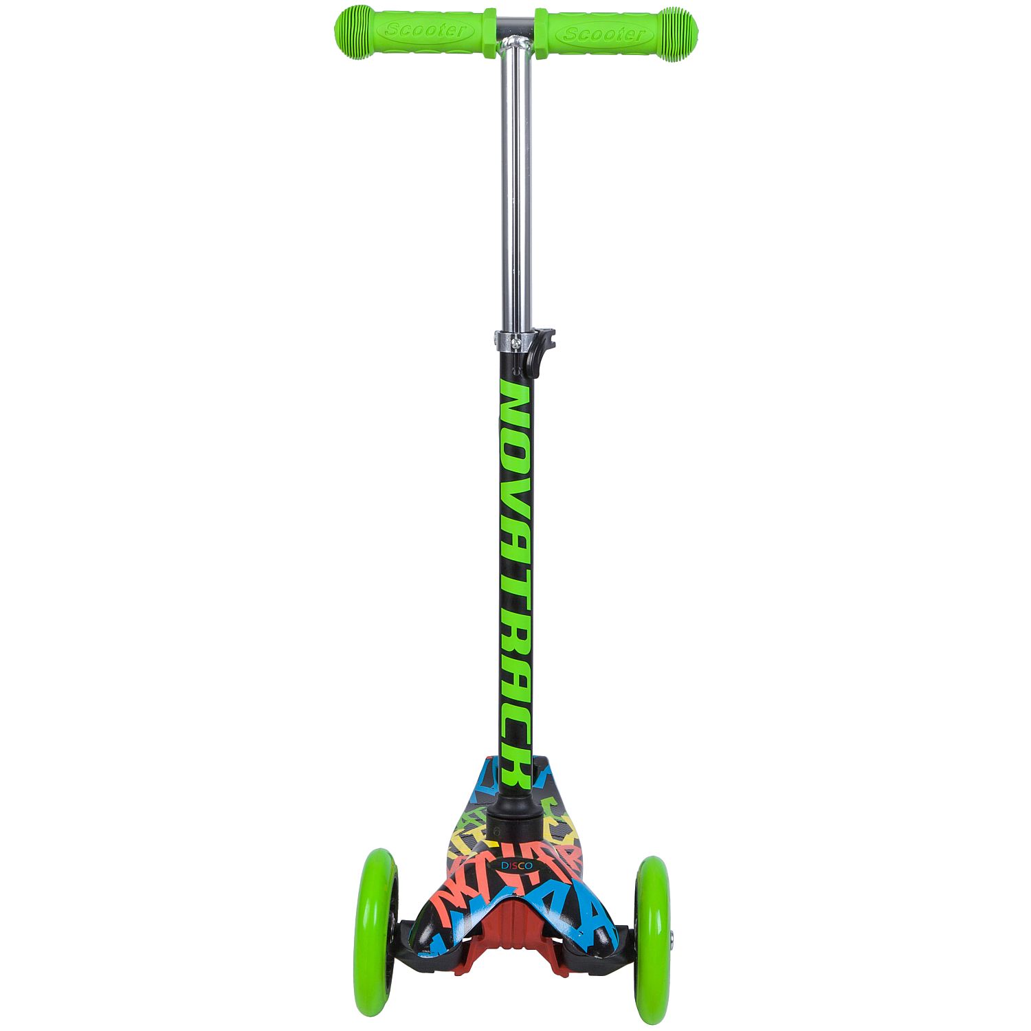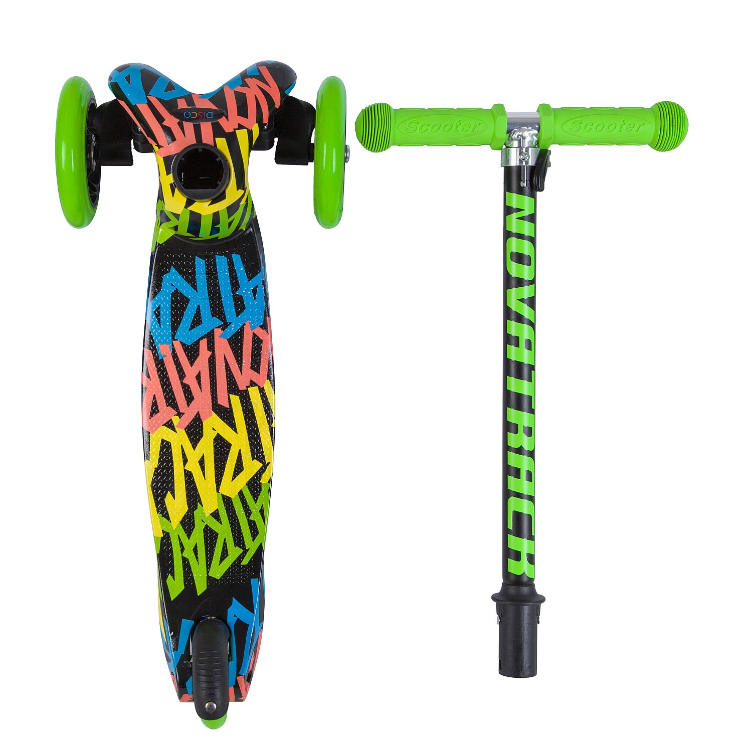 Самокат-кикборд Novatrack Disco-kids Basic (2018), черный-зеленый