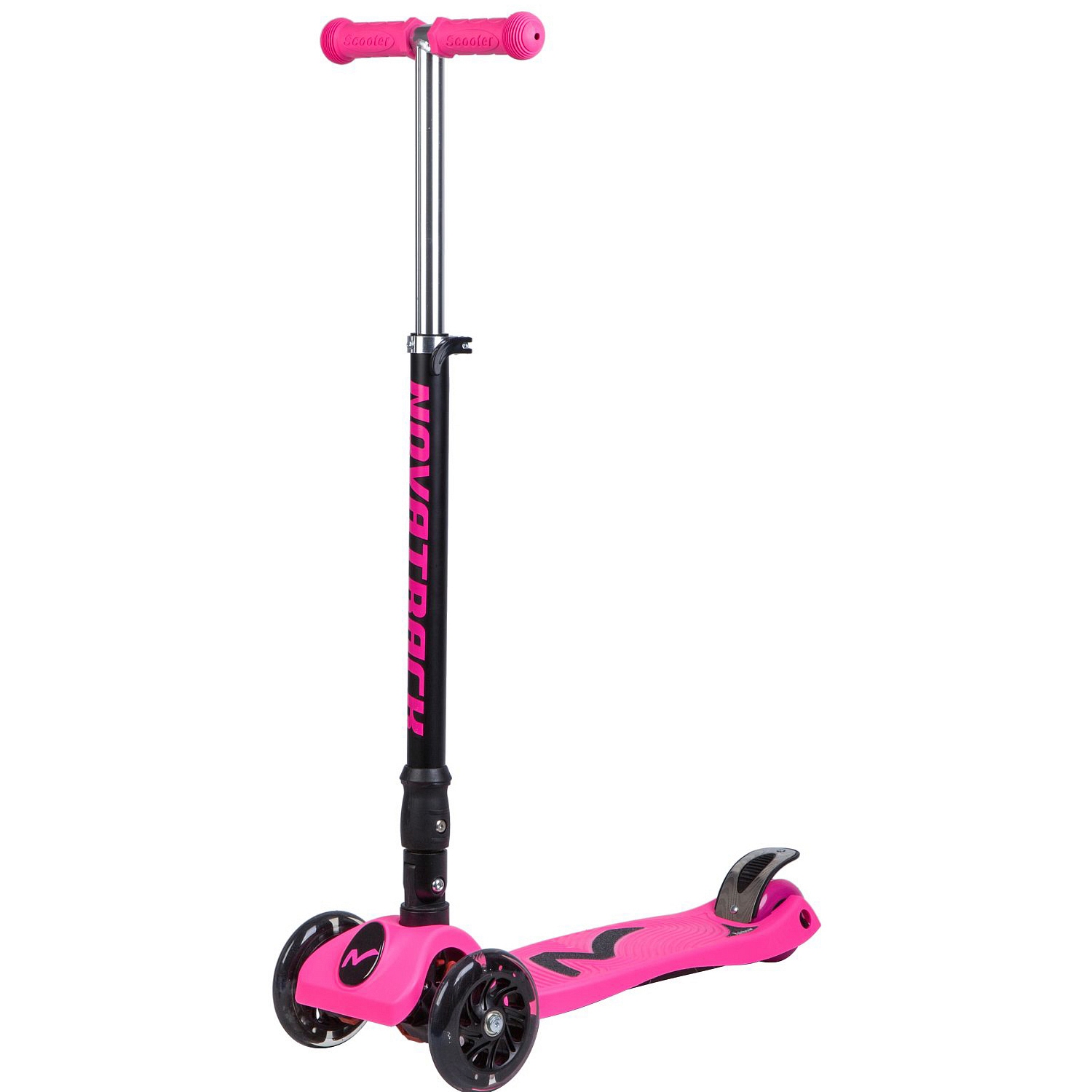 Novatrack RainBow детский трёхколесный самокат-кикборд, предназначенный для детей от 3 лет. Cветящиеся при движении колеса обязательно обрадуют вашего ребенка и сделают его более заметным в темное время суток. Имеется регулировка руля по высоте в трёх положениях. Самокат выдерживает до 60 кг.