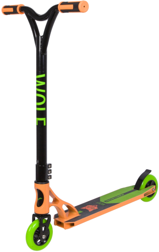 Novatrack Wolf - трюковой самокат предназначенный для агрессивной езды и способен выдержать самые большие нагрузки. Моноблочный вынос, алюминиевые колеса, рулевая с пром. подшипниками и облегченная вилка, так же выполненная из алюминиевого сплава, все это делает самокат Novtrack Wolf не только максимально легким, но и достаточно прочным.