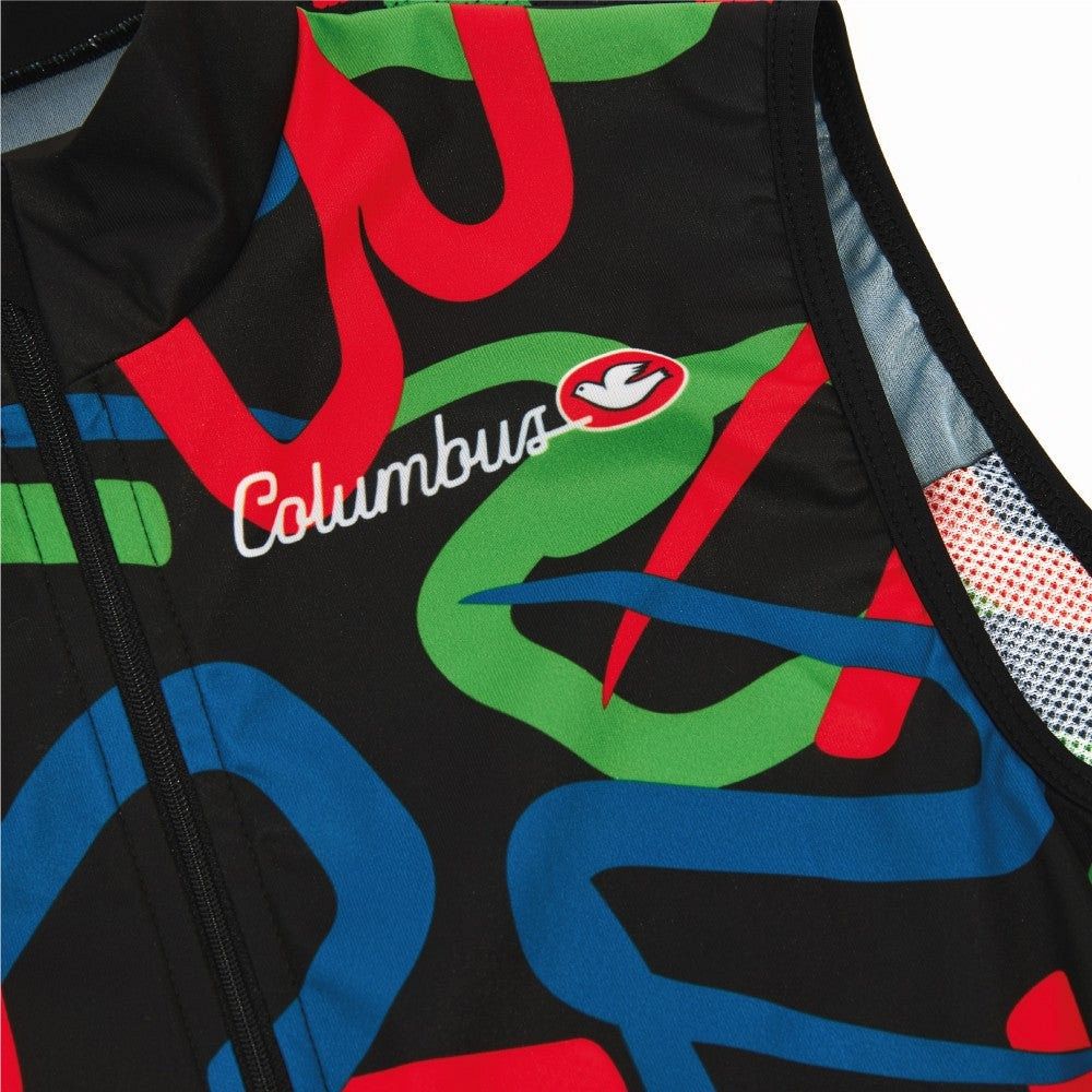 Жилет Cinelli Vest House Ind. Tubography изготовлен из передовой ткани Gravity, которая обладает водонепроницаемой, ветрозащитной и дышащей мембраной. Эта ткань также би-эластична, что создаёт идеальную посадку и свободу движений. Жилет легко складывается и помещается в задний карман, что делает его удобным для транспортировки и хранения.