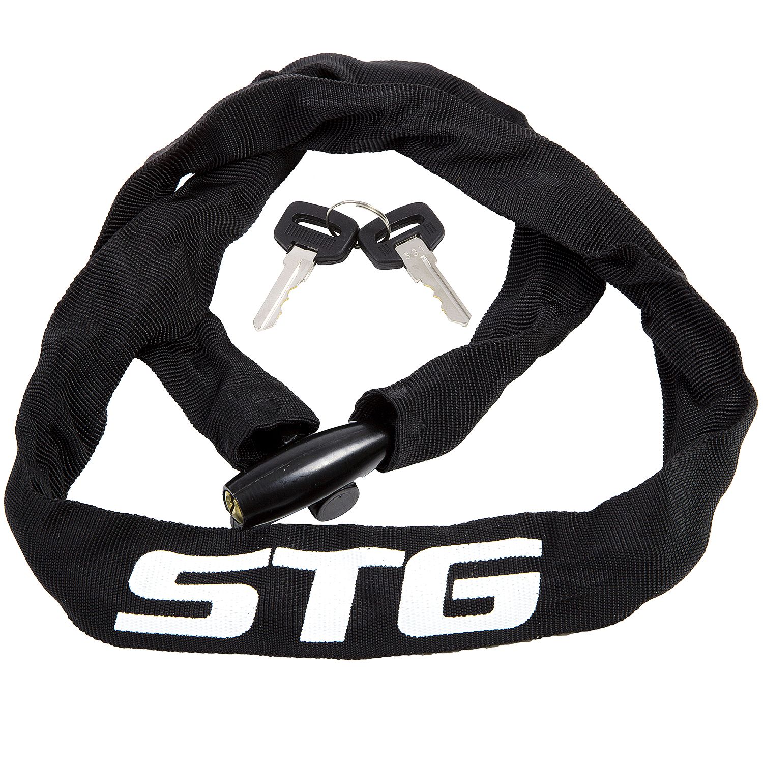 Велозамок STG CHL-811 на ключе. Диаметр - 4 мм, длина - 90см. Цепь в матовой оплетке.