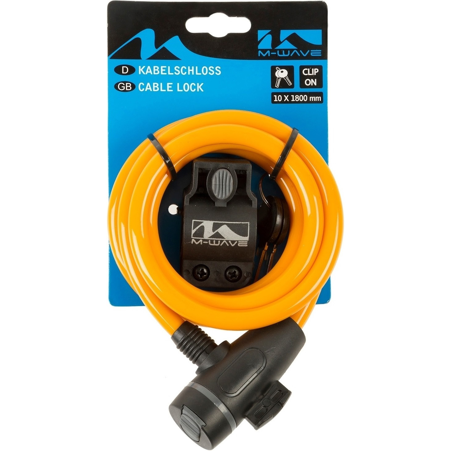 Замок M-Wave тросовый, 10х1800мм, ключ, с защитным колпачком, оранжевый, 5-233867, оранжевый