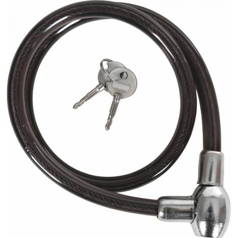 Тип замка – ключевой. Вид замка – трос. Диаметр троса – 12 мм. Длина троса – 800 мм. Материал оплетки – силикон. Кол-во ключей – 2. Тип ключа – крестообразный.
