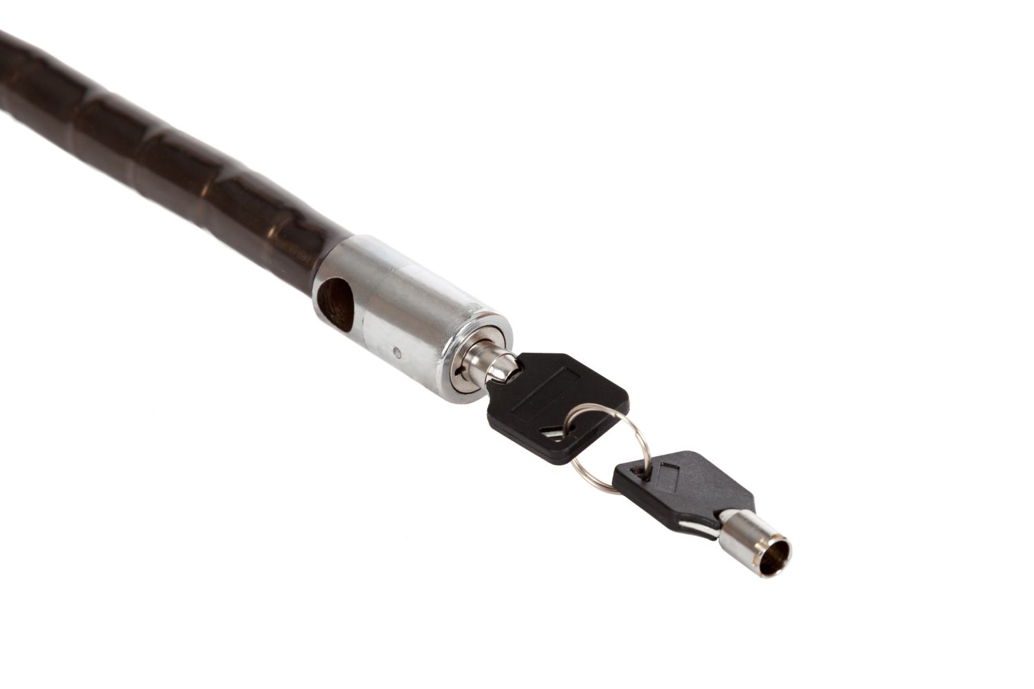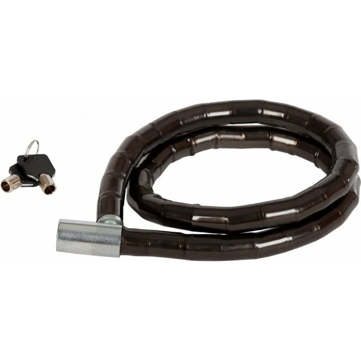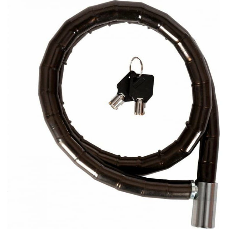 Тип замка – ключевой. Вид замка – шарнирный. Диаметр троса – 18 мм. Длина троса – 1000 мм. Материал оплетки – PVC. Кол-во ключей – 2. Тип ключа – цилиндрический.
