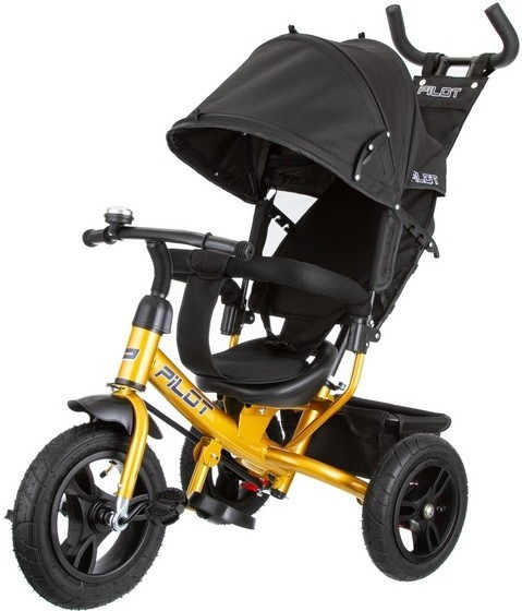 Велосипед трехколесный Pilot PTA3, с ручкой управления, черно-желтый