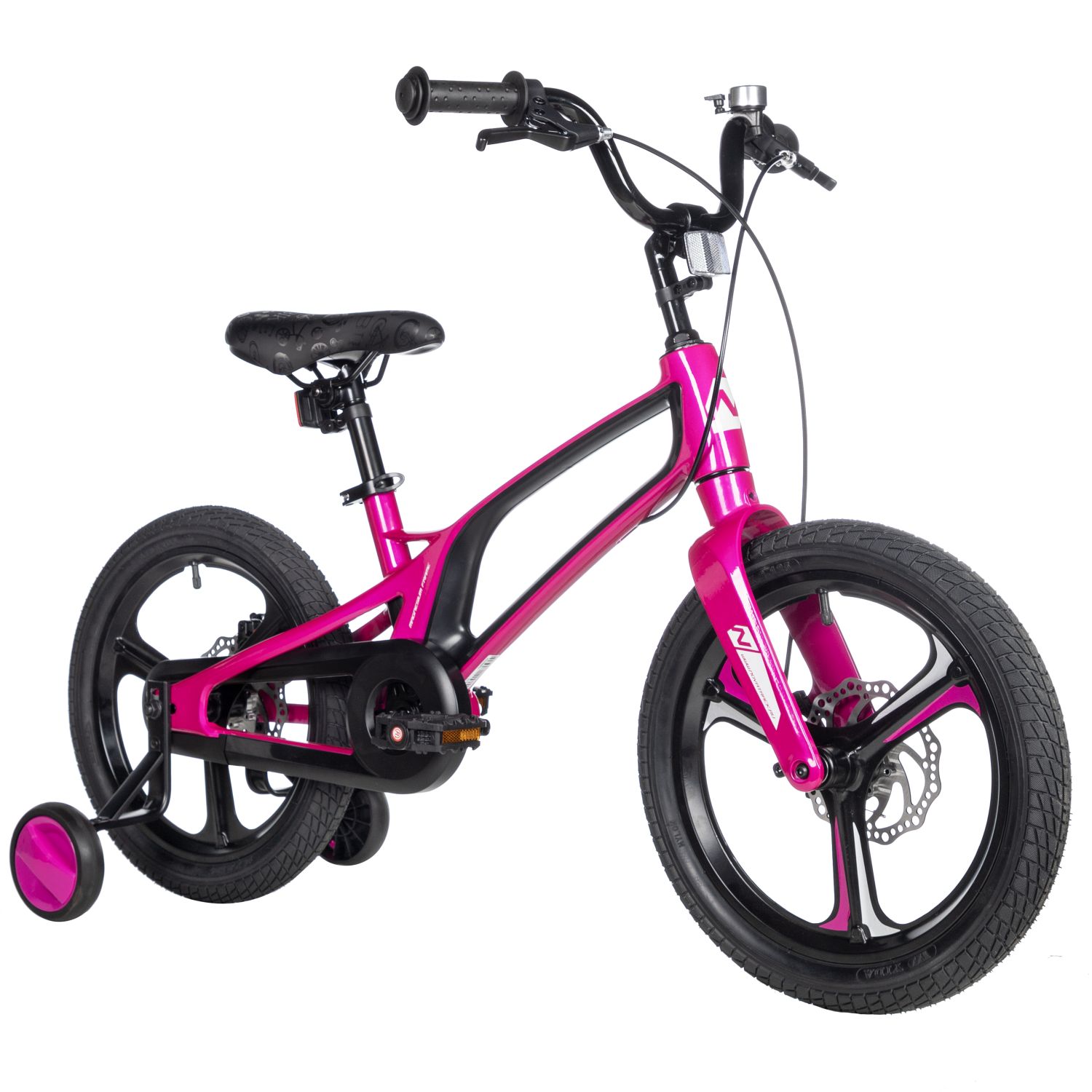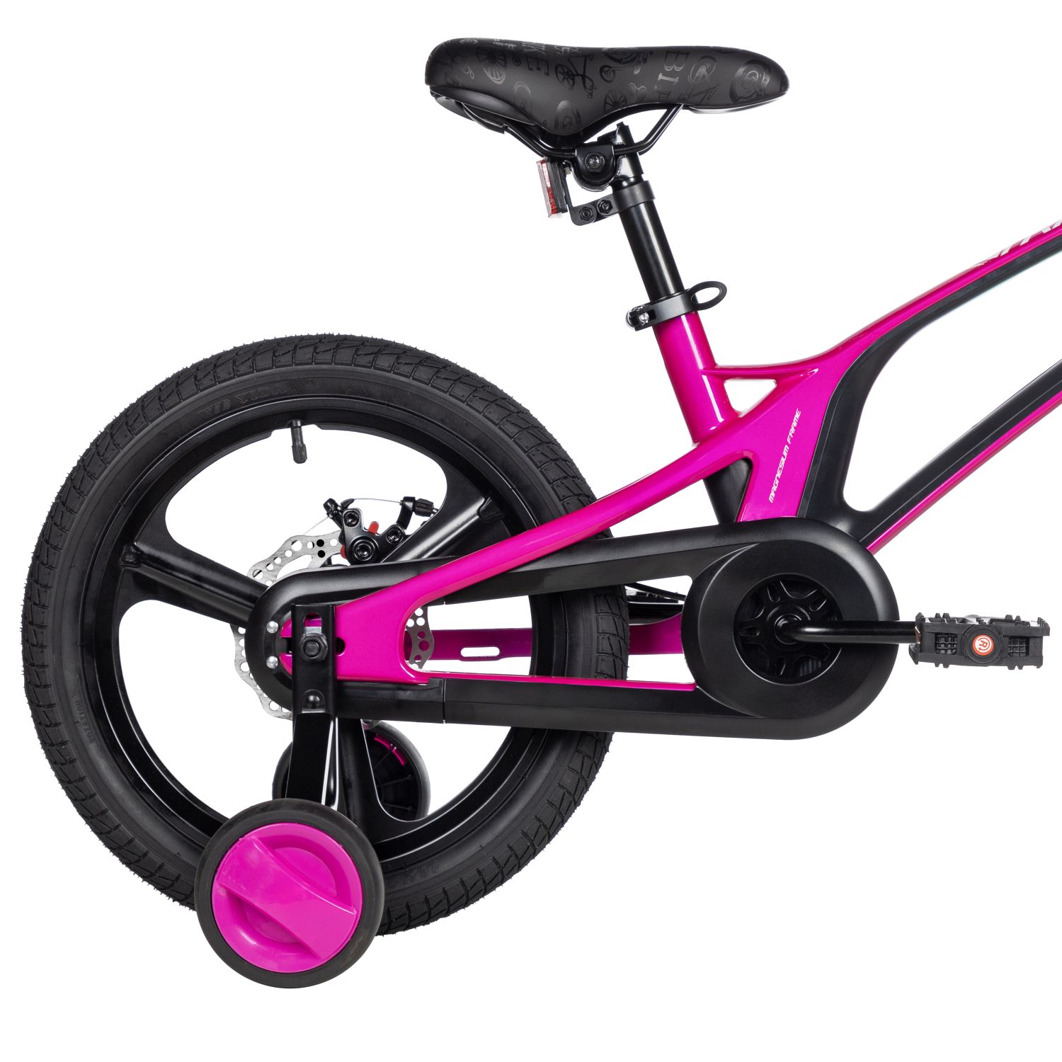 Рама, изготовленная из магниевого сплава, делает его лёгким и прочным, что особенно важно для активных малышей. Жёсткая магниевая вилка придаёт модели отличную управляемость, позволяя юным гонщикам уверенно справляться с неровностями на дороге.