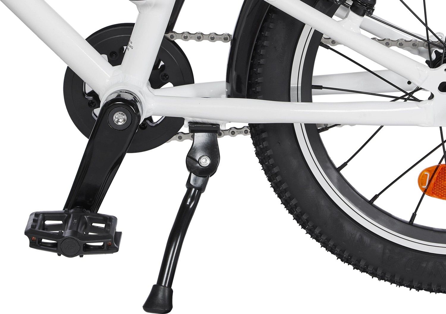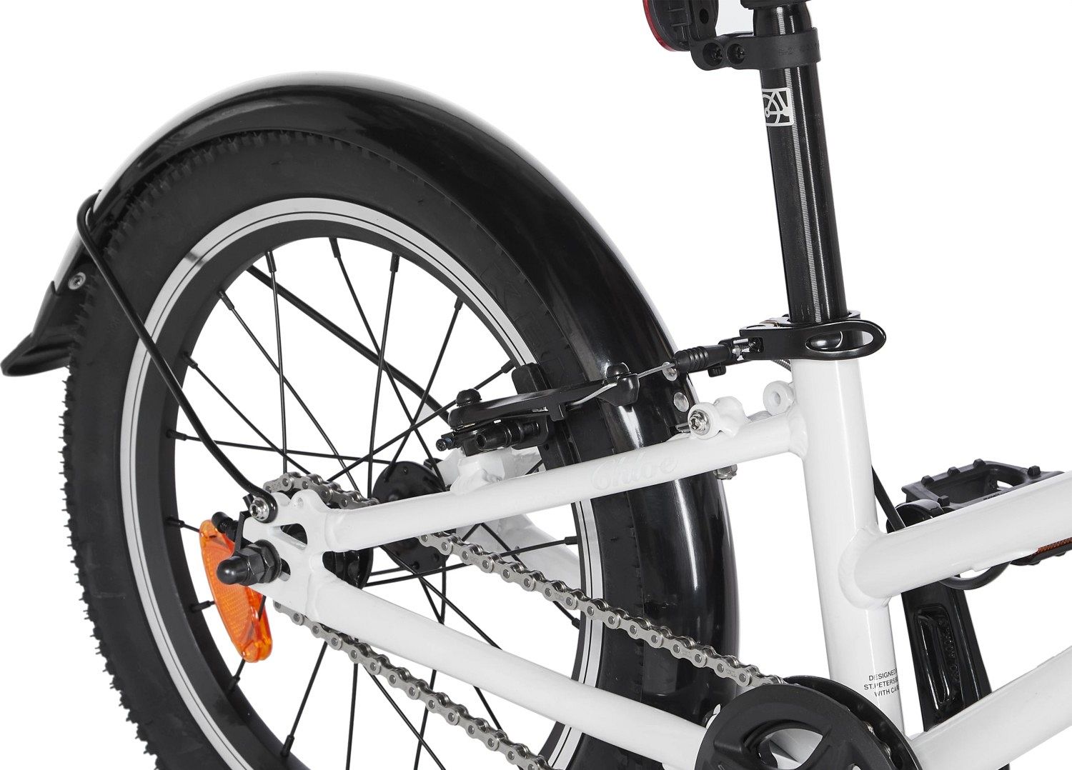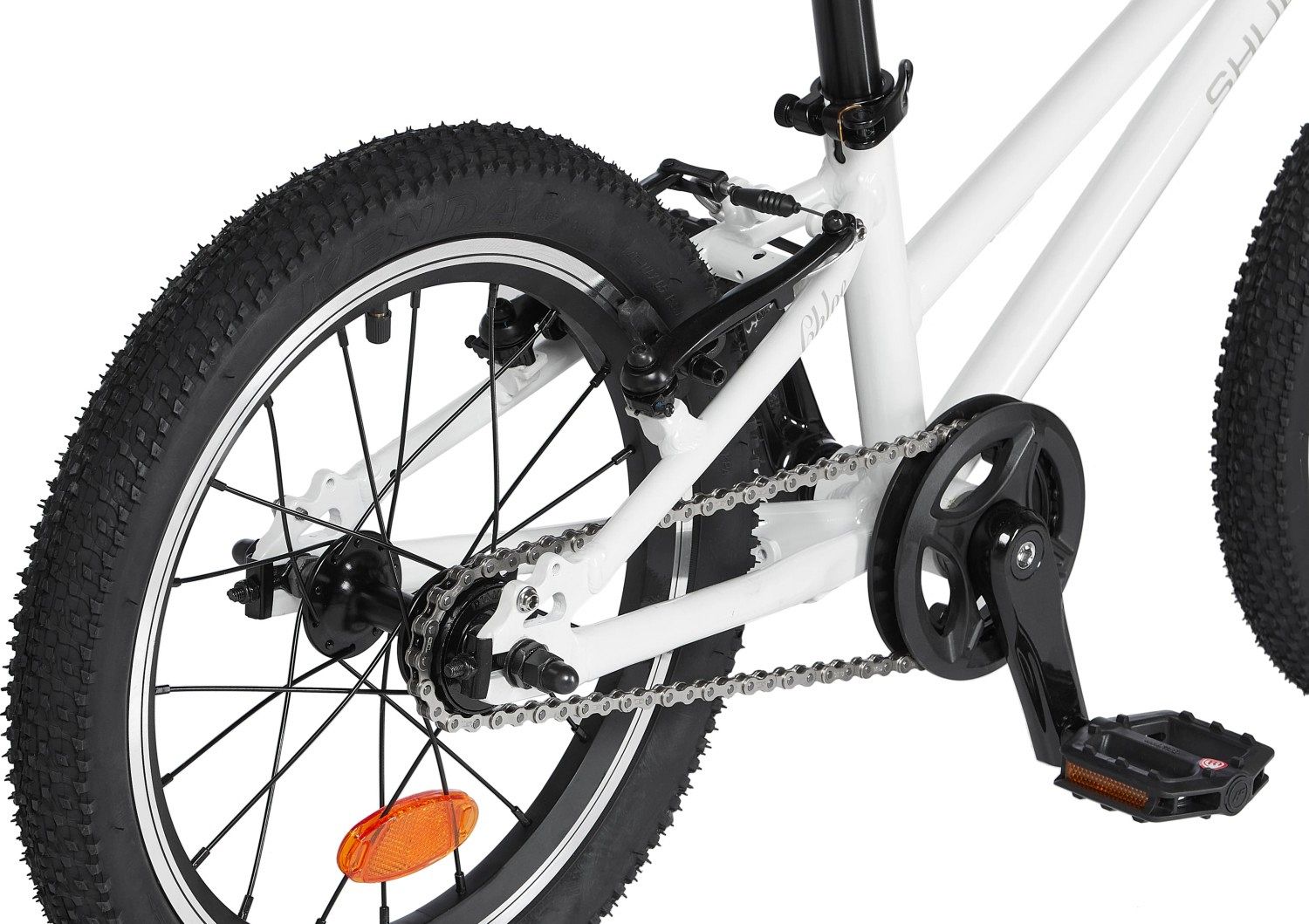 Chloe 16 Race оснащен ободными тормозами V-brake, аналогичными тем, что используются на взрослых моделях, но адаптированными под маленькие пальчики. Отсутствие передач упрощает управление, позволяя детям сосредоточиться на дороге и наслаждаться поездкой. В комплект входят катафоты и звонок, добавляющие дополнительные элементы безопасности.