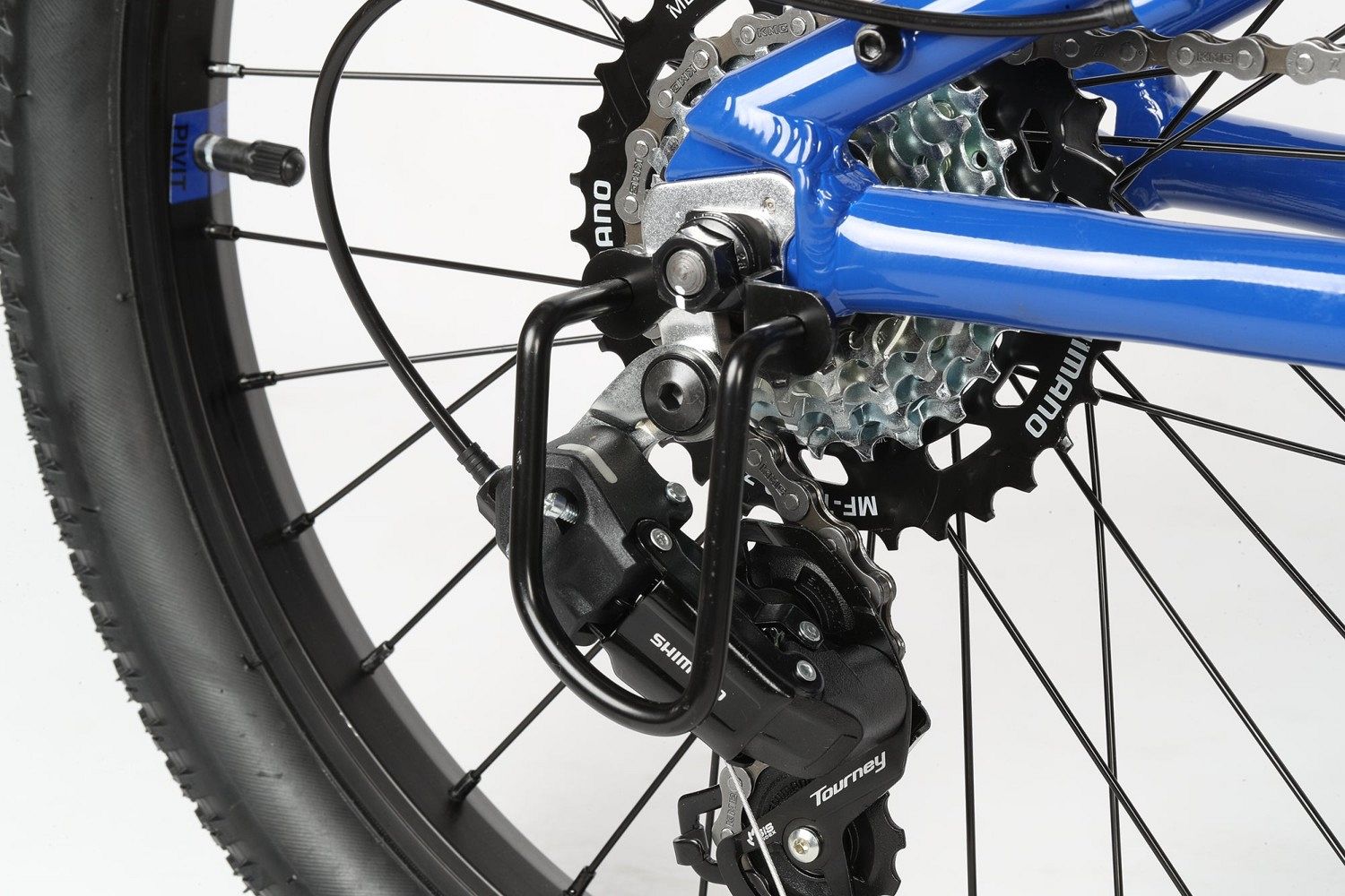 - Простая и надёжная система переключения скоростей с 7 передачами и задним переключателем Shimano Tourney позволяет легко адаптироваться к разным условиям езды. Один передний переключатель и рево-шифтер упрощают управление, чтобы ребёнок мог сосредоточиться на удовольствии от катания.