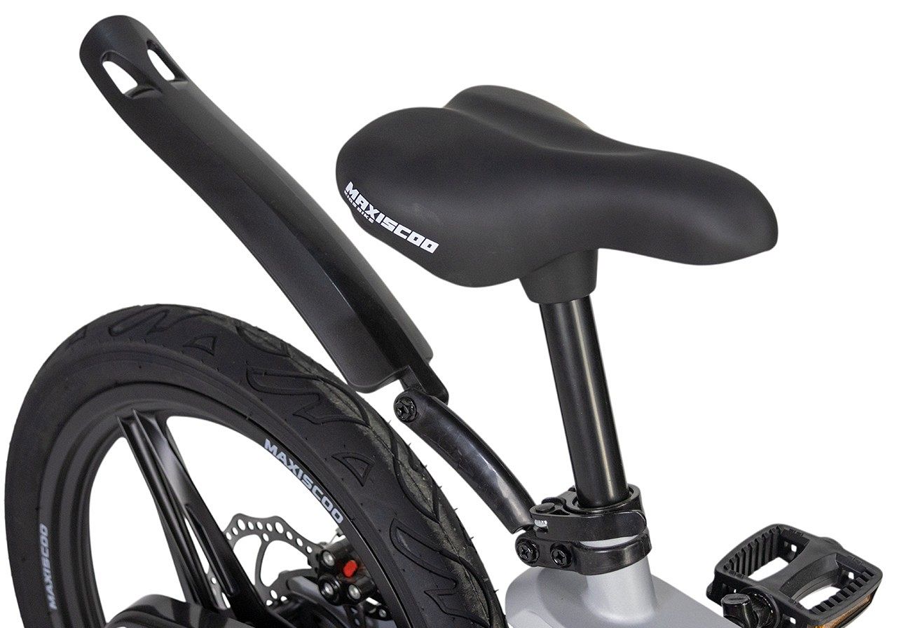Безопасность на первом месте: Maxiscoo Space Deluxe 18 оборудован дисковыми механическими тормозами, которые осуществляют быструю и эффективную остановку. Дополнительные боковые колёса добавляют устойчивости, что особенно полезно для начинающих райдеров. Велосипед также оснащён грязезащитными крыльями, которые защищают от брызг и грязи, а полный защитный кожух цепи предотвращает случайные травмы.