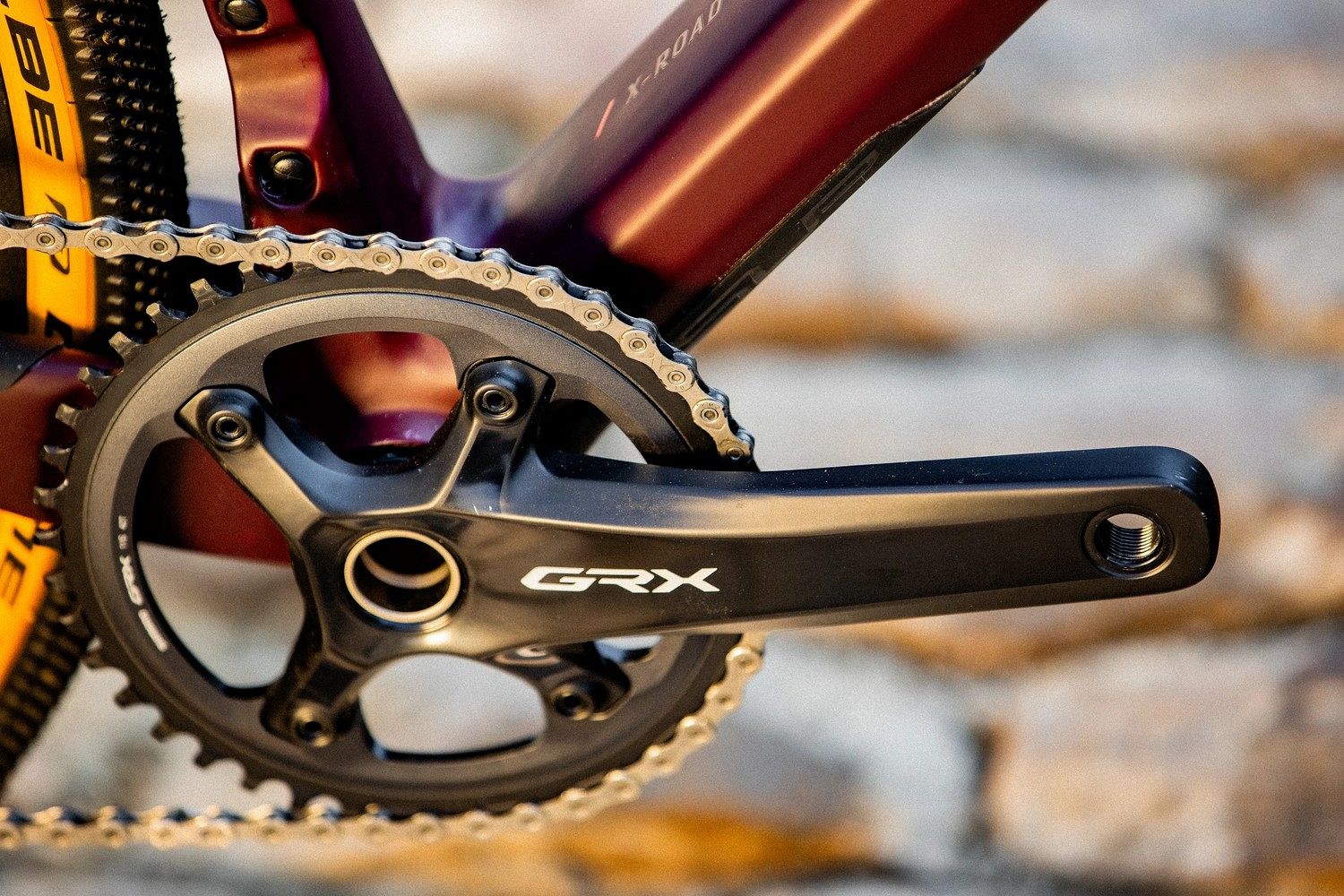 – Передача Shimano GRX 1x12. Плавное переключение, широкий диапазон с кассетой 10-45T.