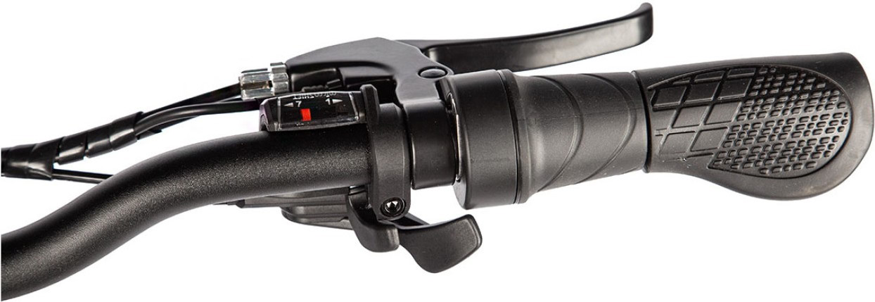 – Трансмиссия Shimano Tourney (7 скоростей) обеспечивает нужный диапазон переключений.