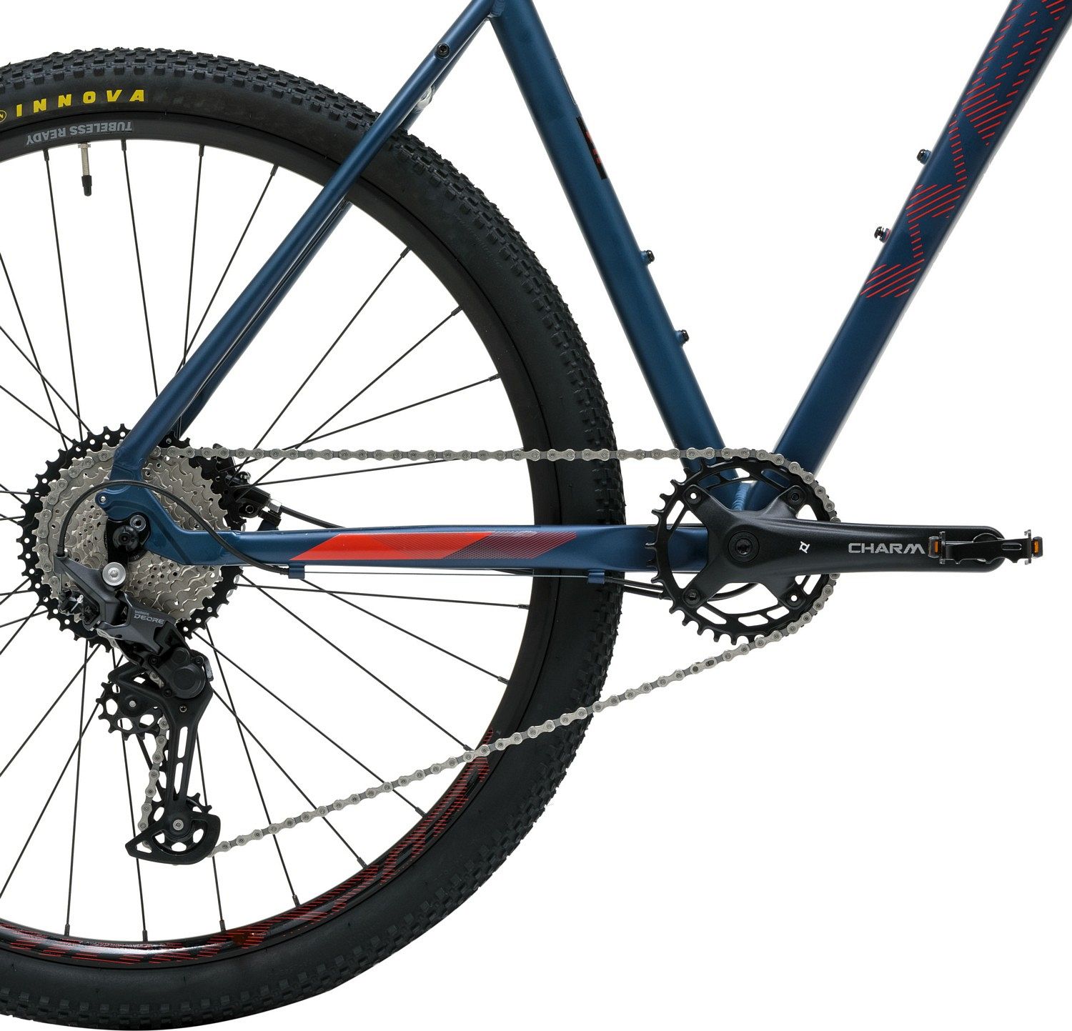 Велосипед также оснащен втулками на промышленных подшипниках, которые обеспечивают плавную езду и имеют долгий срок службы. Двойные обода совместимы с бескамерной системой, что позволяет вам апгрейдить ваш велосипед для достижения более высокого уровня. Широкие покрышки Innova 2549 2.1" обладают отличным сцеплением на бездорожье и большим контролем при езде. Широкий руль 720 мм увеличивает контроль управления и стабильность во время катания.