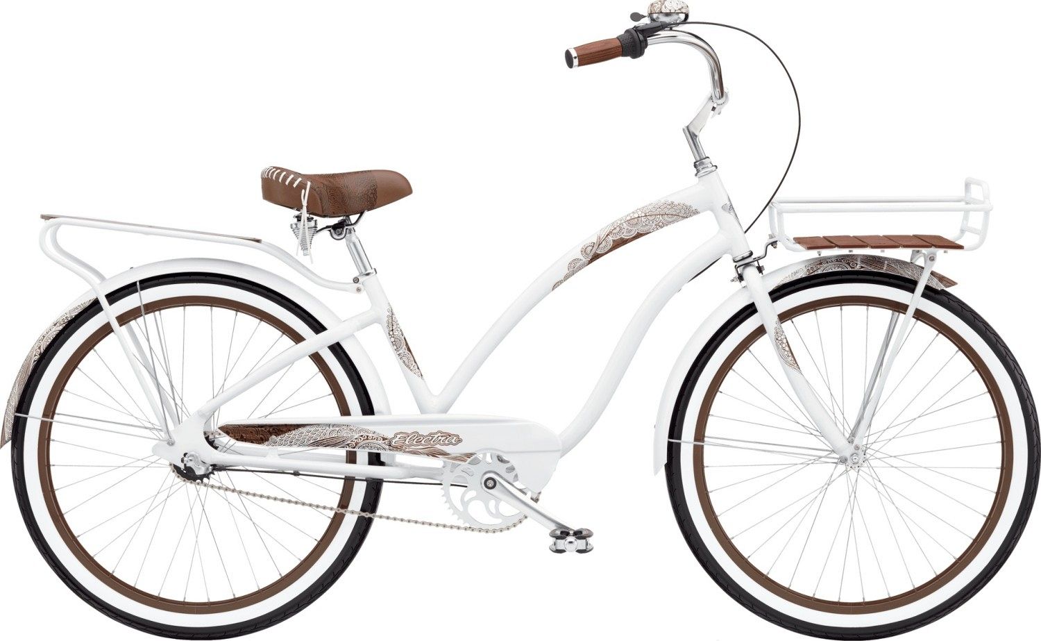 Трансмиссия Shimano Nexus с планетарной втулкой на 3 скорости отвечает за плавное и легкое переключение передач, а передний роллерный и задний ножной тормоза гарантируют надежное торможение в любых условиях. Обода Electra, окрашенные в тон, и покрышки RetroRunner размером 26"x2.125" обеспечивают отличное сцепление с дорогой и плавный ход.