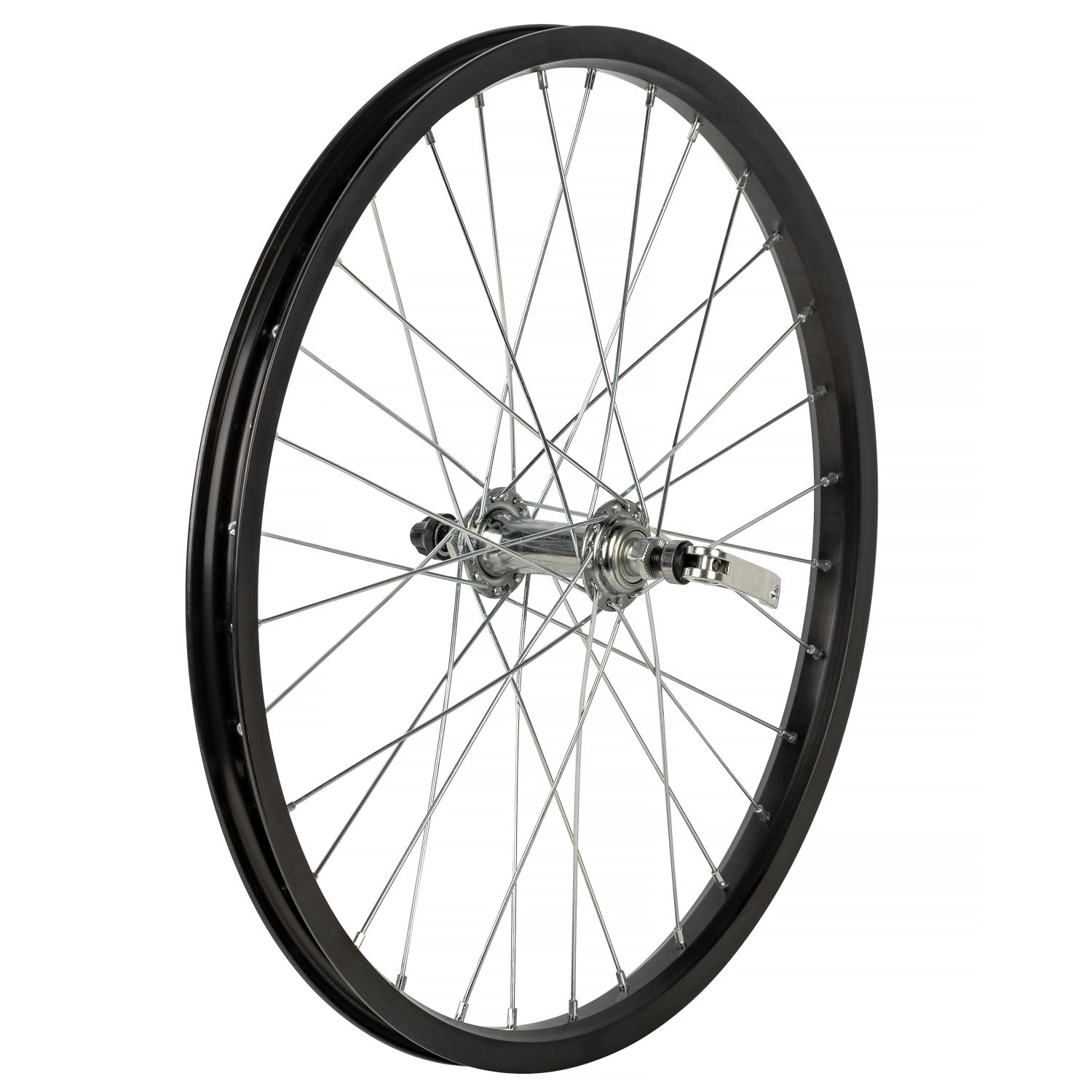 Колесо 20" переднее, одинарный алюм.обод 32H, стал. втулка с насып. полшип., эксц., черный