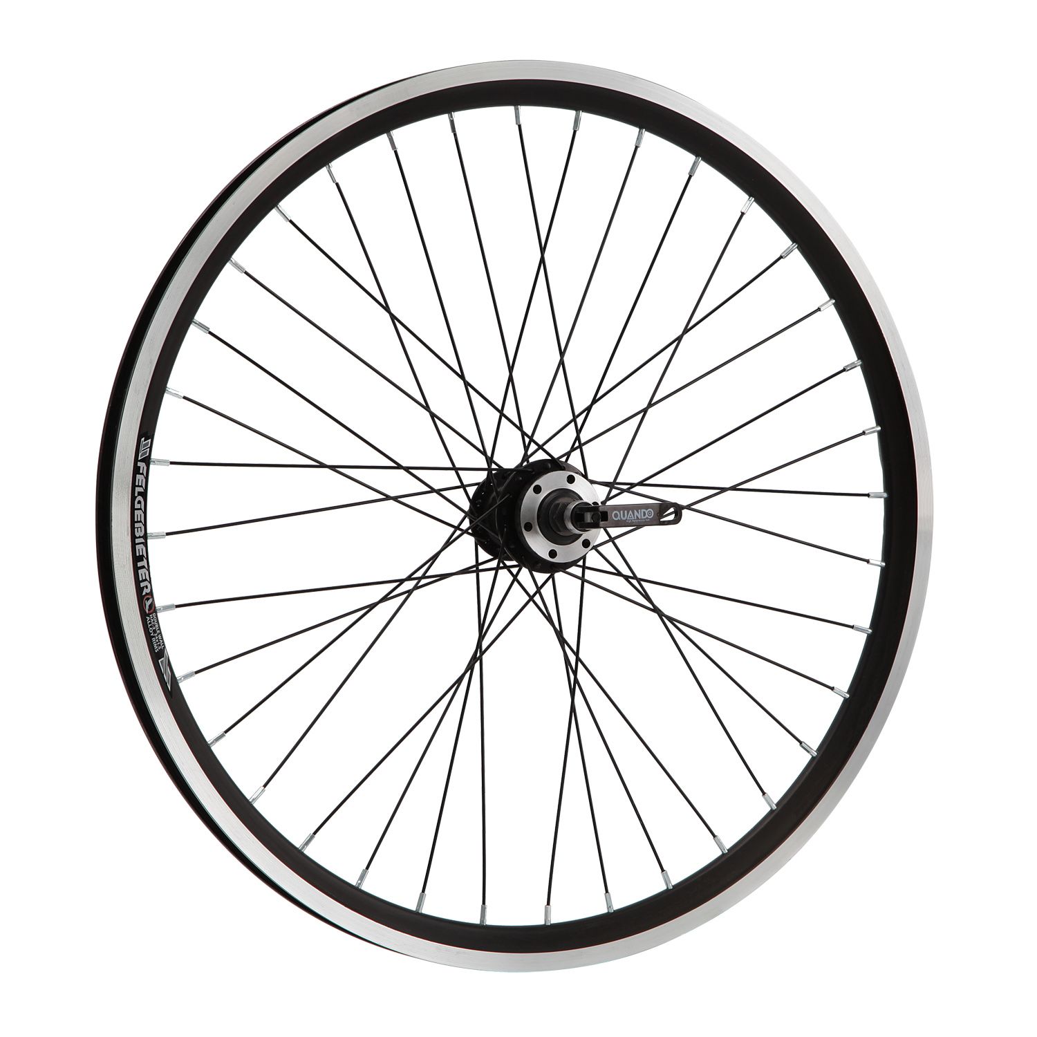 Колесо 24" переднее в сборе(без резины) с двойным алюминиевым ободом на 36 спиц со втулкой под дисковый тормоз.