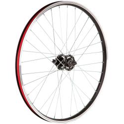 Переднее колесо 24 дюйма, двойной обод под v-brake на 32 спицы. Стальная втулка с промышленными подшипниками, крепление на эксцентрик.