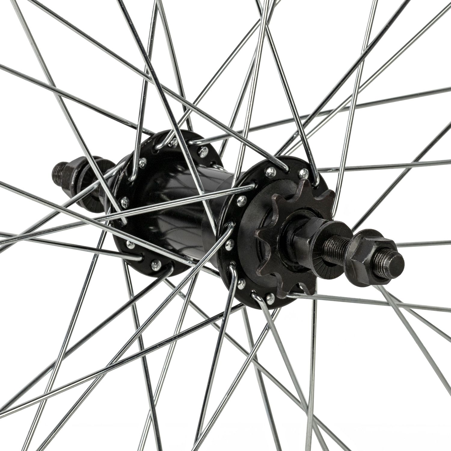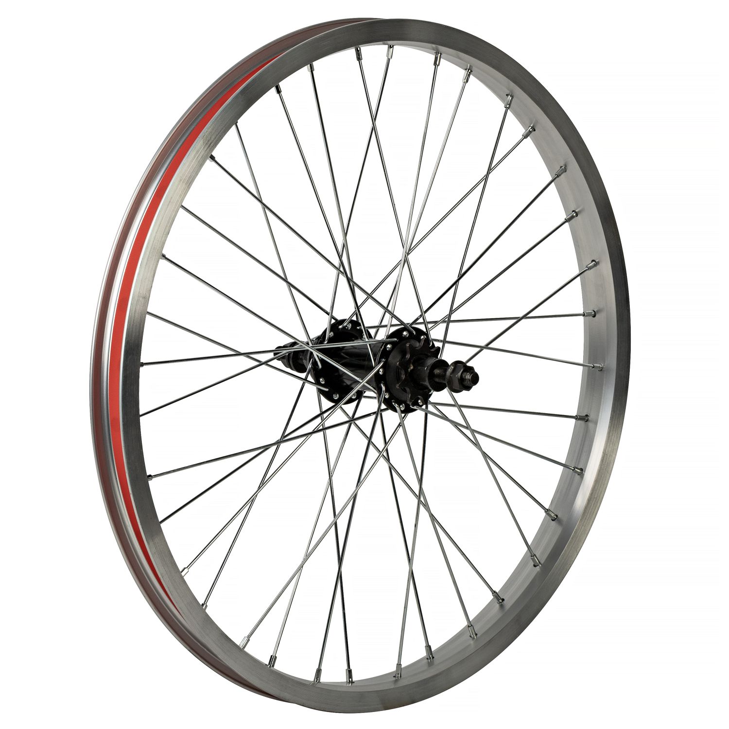 Колесо 20" заднее BMX, двойн. алюм. обод 36H, стал. втулка, 3/8"х175 мм, насып. подшип., 9T, серебристый
