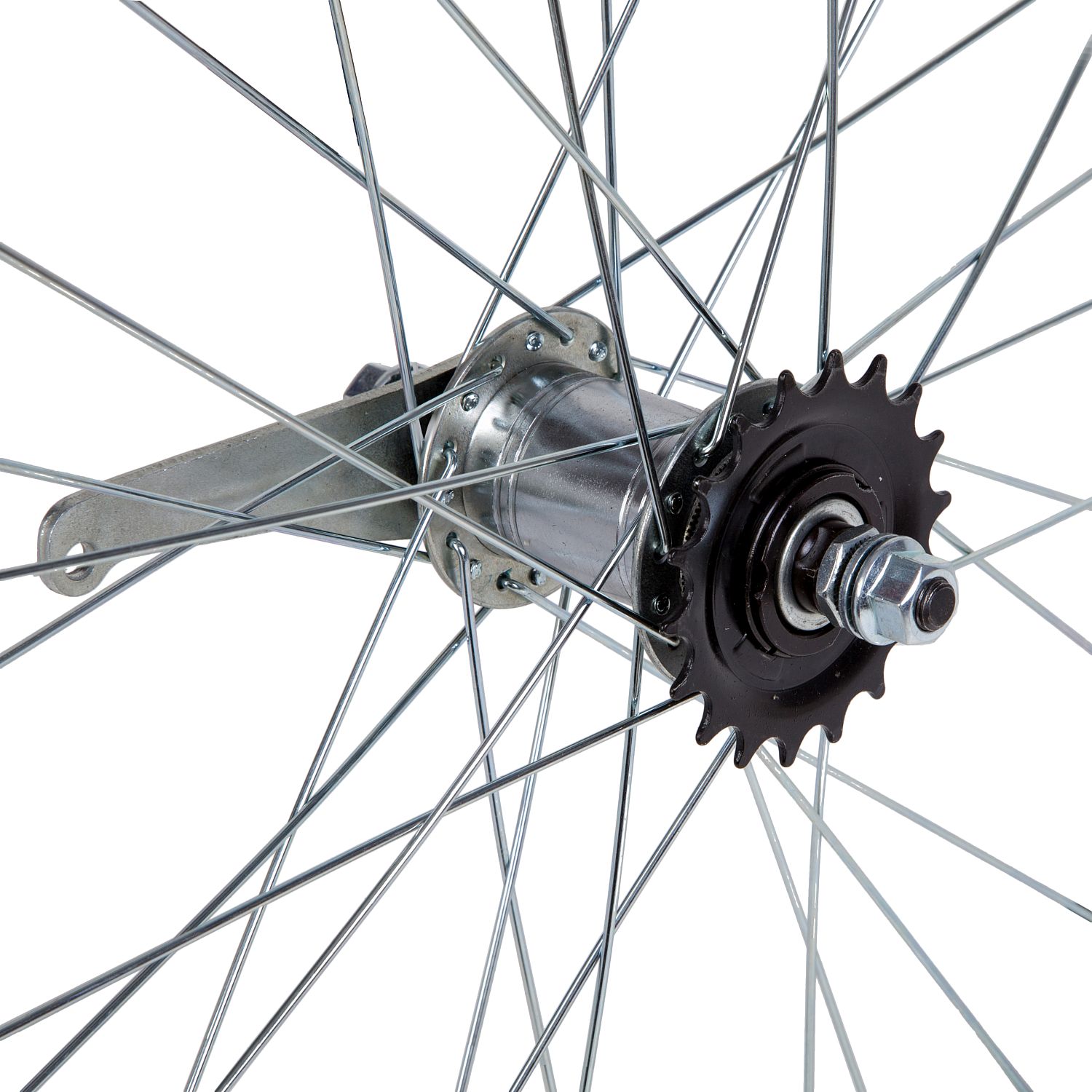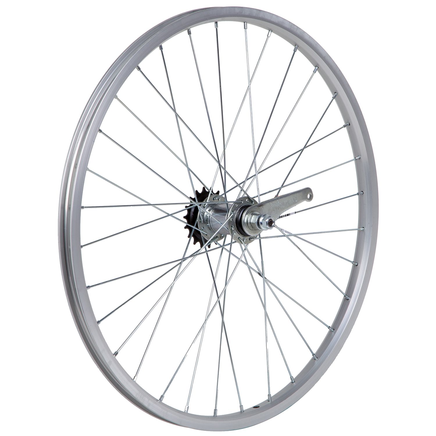 Колесо 24 заднеебез резины, одностенный алюминиевый обод на 32 спицы. Тормозная втулка FALCON сталь, на гайках.