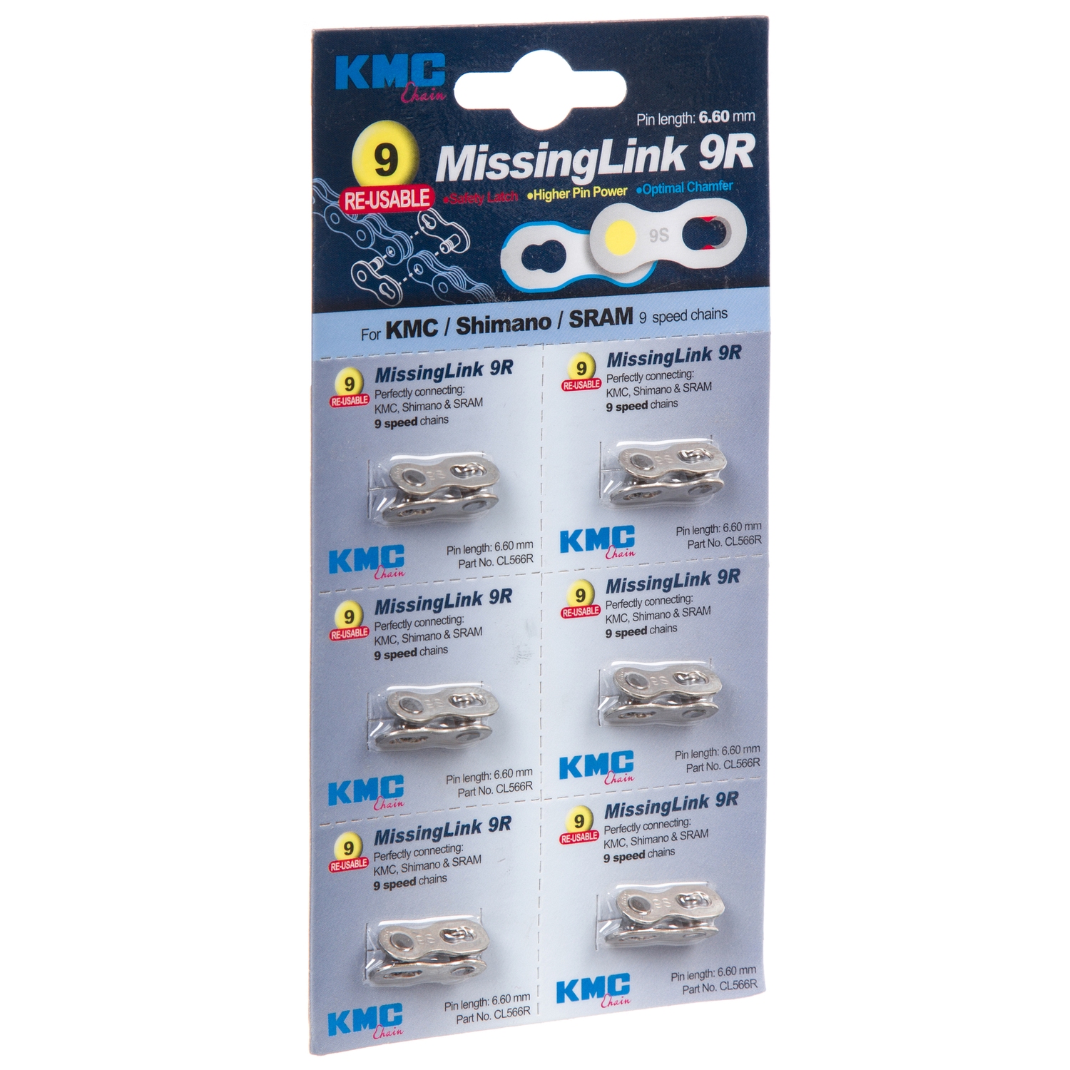 Замок цепи KMC , модель CL566R-NP для 9 скоростей (6 шт. на блистере)