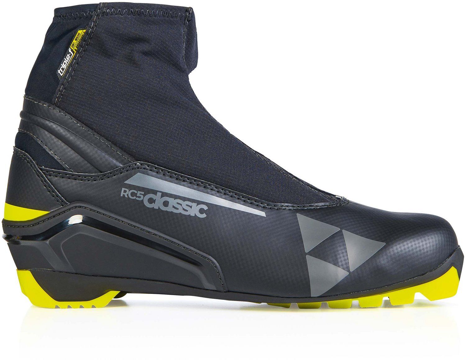 Беговые ботинки Fischer RC5 Classic - спортивная классическая модель для соревнований и тренировок. Новая гоночная подошва для оптимального отталкивания и продвижения вперед. Дышащая мембрана Triple-F и удобная шнуровка Speed Lock обеспечивают комфорт при катании.