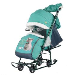 Санки-коляска Нашидетки, с котенком изумрудный НДТ4-1/8