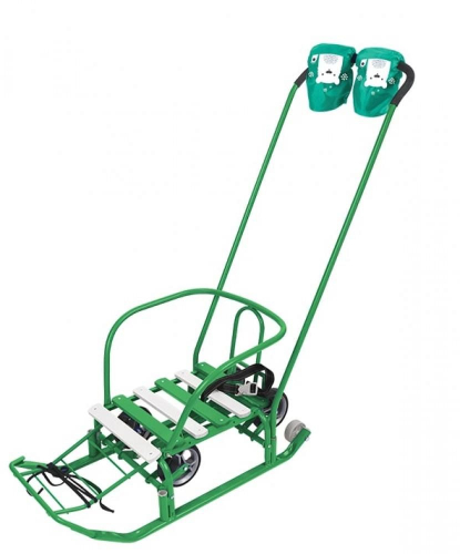 Колеса и полозья позволяют свободно передвигать санки по любой дороге