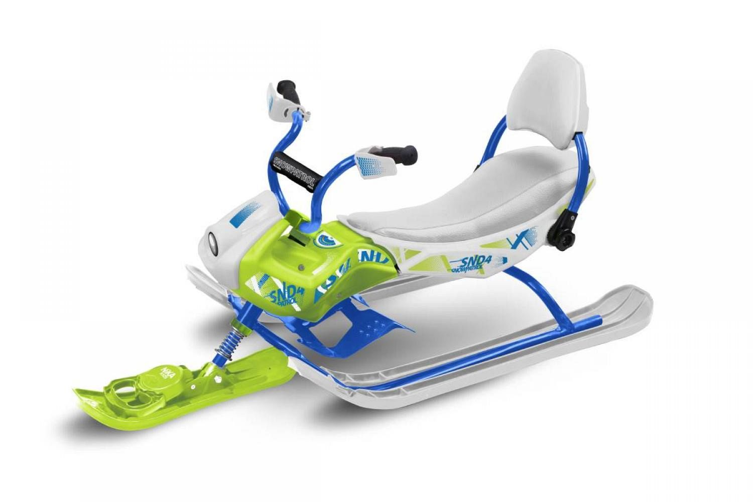 Основным преимуществом, выделяющим его из линейки товаров, является маневренность. Она достигается благодаря центральной лыже, соединенной с рулем. Лыжа закреплена отдельно от боковых полозьев. Благодаря этому ее можно поворачивать, что заставляет снегокат менять направление движения.