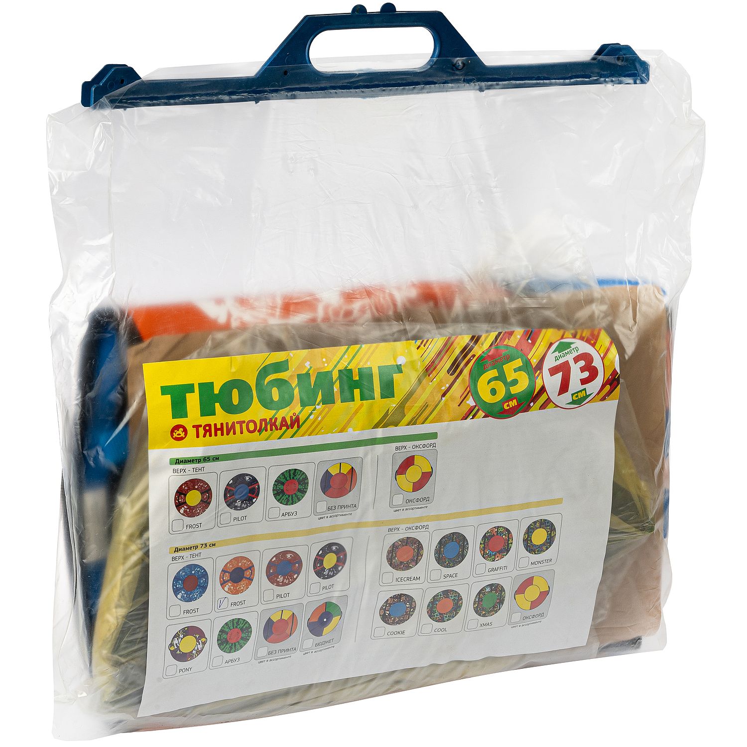 Какой же ребенок не хочет зимой мчаться с горки? Детские тюбинги – прекрасная альтернатива санкам и одно из главных зимних развлечений, возможность весело и активно провести время, а также удобное транспортное средство, позволяющее родителям ускорить передвижение по улицам. Это и отличный способ семейного отдыха: прокатиться с горы не откажутся даже взрослые. юбинги-ватрушки от компании ""Тяни-Толкай"" отличаются огромным разнообразием ярких принтов и форм. Легкие и удобные тюбинги придутся по душе любому малышу. Тюбинг устойчив к морозам до -25 градусов. Верх и дно тюбинга выполнено из армированного ПВХ материала высокого скольжения плотностью 630 гр/м. Швы прошиты плотной лавсановой нитью. Все швы и посадочное место усилены прочной ременной стропой.