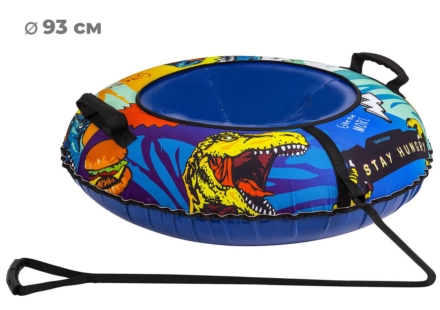 Прочное травмобезопасное сиденье имеет усиленное дно, а также дополнительно имеет стропу под сидением, которая снижает нагрузку и позволяет пользоваться тюбингом несколько сезонов.